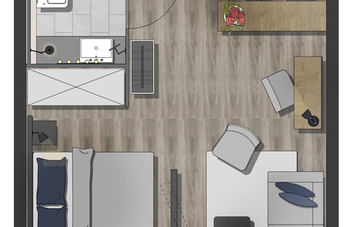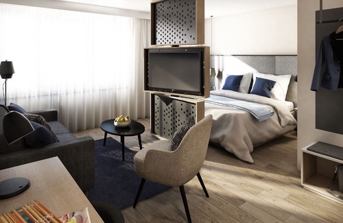 The Comfort Apartments, which are spread over 3 floors, offer a living space of 33-50 square meters each. The furnishing of the apartments combines functionality and design with a feel-good character. These include fully equipped open kitchens (microwave with oven function, large refrigerator, dishwasher, hob, Nespresso machine, kettle and much more), floor-level rain showers, relaxation area with couch and lounge chair, box spring beds with GX Soul mattresses, TV wall with 43 “Smart HD TV incl , Streaming function, working zone and a bar area. In addition to the 24-hour fitness club, every guest will also find resistance sports bands incl. Instructions for his individual in-room work out for the vital lifestyle.