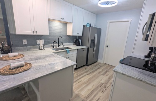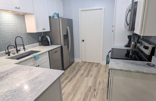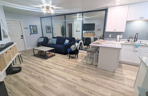 6 minute walk to the sand! Bring the whole family to enjoy fun in the sun at our beautiful undisturbed beaches on Hutchinson Island. Hear the sound of waves breaking from the front door. This freshly renovated unit is close to boat ramps, parks, restaurants, ball fields, there is fun for the whole family.