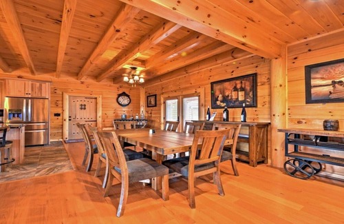Cabin is handcrafted and designed to offer spacious living areas with spectacular views while enjoying a rustic log cabin ambiance in the beauty of the country. Sleeps 16-18 guests comfortably. 6 bedrooms and 4 bathrooms in 5200 sq ft of living area. One by the kitchen and one in the basement by the recreational area with pool table. 3 master suites and 4 full bathrooms