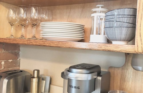 You'll enjoy the peaceful ambiance of being high above the street level and appreciate the modern amenities like personal code keyless entry, WiFi, a washing machine and dryer, central air conditioning and heat, ceiling fans throughout, high-quality natural bed linens and blankets for each sleeping space, all bathroom amenities including plenty of towels and toiletries, a fully stocked kitchen with plenty of plates and silverware for your entire group, and also a wide array of pots, pans, utensils, crockpot, toaster and pod coffeemaker with frothing feature for your own "coffeeshop" without leaving! We want you to be our GUEST, so we provide a variety of coffees and teas as well as light snacks and breakfast options for your stay - please help yourself!