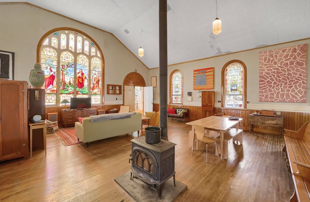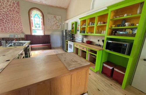 Stay in a one-of-a-kind 19th century converted church in the heart of Penns Valley, just 25 minutes from Penn State University Park, State College. Light pours through original stained-glass windows onto a spacious, family-friendly interior. Take day trips to PSU football games, Creamery, Penn’s Cave, fish at Penns Creek, boat and hike at Bald Eagle State Park, ski/snowboard & go-kart at Tussey Mountain, and swim, kayak or bird watch Raystown Lake. This listing is under new ownership and proceeds are reinvested into the church house.