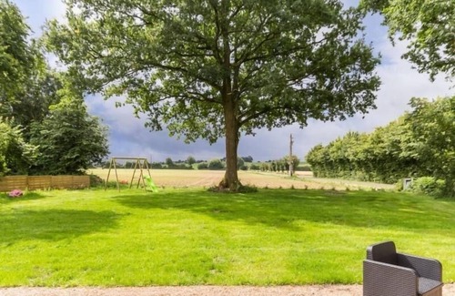 Unfenced garden of 3000 m² with gravelled terrace (facing South), with swing, ping-pong, badminton net and ball/rackets. Parking in the property (awning).
