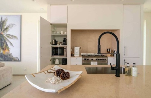 • Gourmet amenities: The fully equipped kitchen features a high-end Smeg gas stove, Zwilling pans and knives, and a dedicated coffee station with Smeg and Nespresso machines. For alfresco dining, the outdoor kitchen under a pergola is a delightful addition.