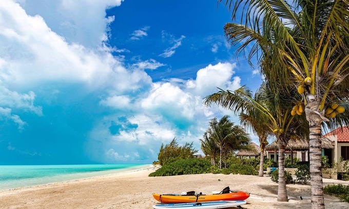 Swaying Palms is located in the PERFECT location. With soft powder white sand and crystal clear turquoise as far as you can see you will never want to leave. Located on the Caicos Bank, there are no waves and you can walk out, kayak or paddle board several hundred yards and the water will still only be up to your chest. Adding to the perfect location, while still being in a very quite and romantic spot you are only a 2-3 minute drive to Grace Bay and all the restaurants, grocery stores, gift shops, golf course, Casino and other activities. If you prefer not to drive a 2 minute walk on the beach (or road) will bring you to the nearby Shore Club with its restaurants and spa..
