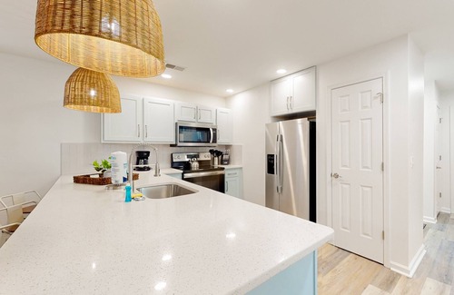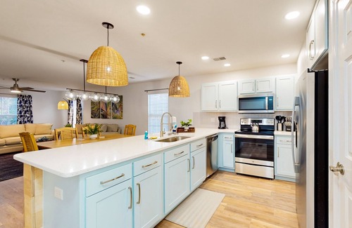 New flooring, granite countertops, and updated appliances add an elevated touch to coastal living back at the condo. The screened porch is sure to be a favorite spot for coffee or cocktails. Smart TVs in the living room and each bedroom offer flexible home entertainment. Additional perks include free WiFi, central air-conditioning, and a private washer/dryer.